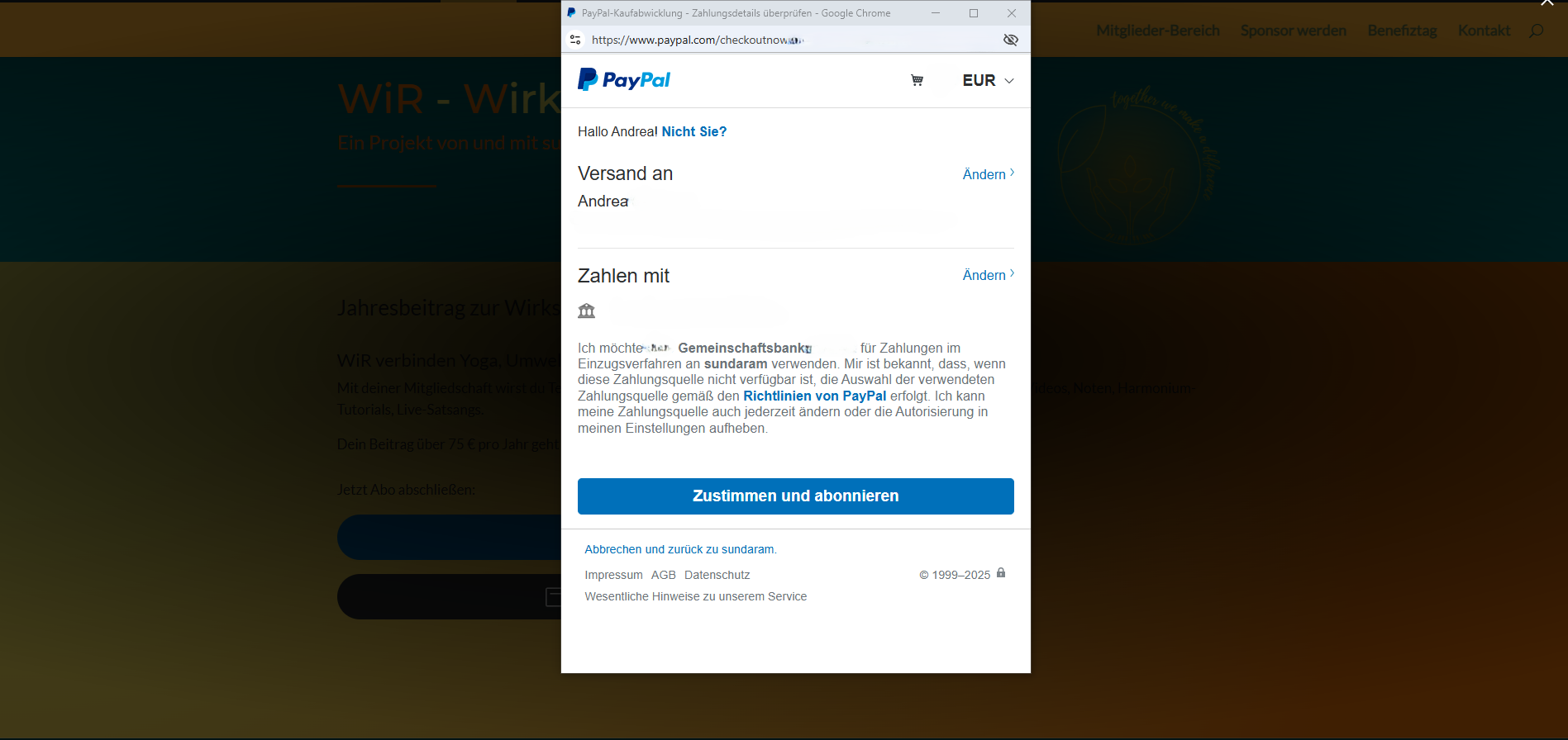 Wenn du ein PayPal-Konto hast geht das ganz einfach über den Button „PayPal Abonnieren“. Ohne eigenes PayPal-Konto kannst du über den Button „Debit- oder Kreditkarte“ die Zahlung per SEPA Lastschrift oder Kreditkarte veranlassen.